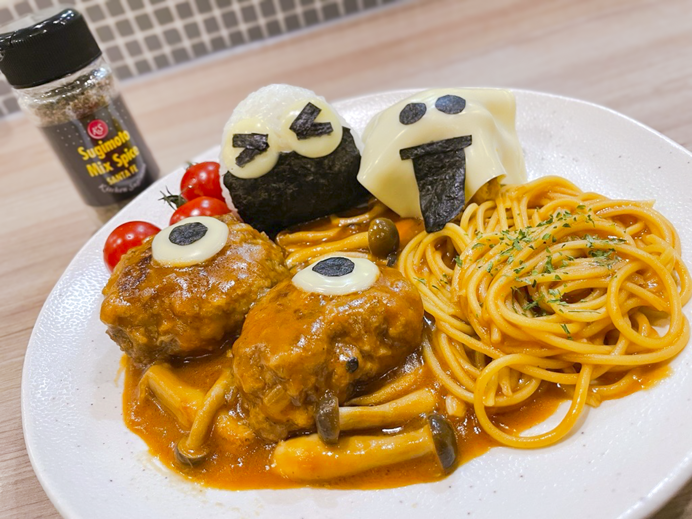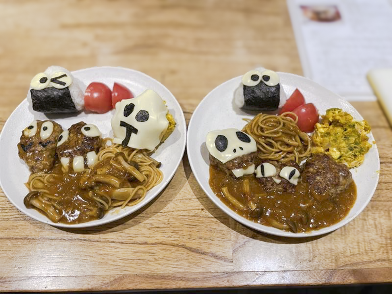 今回のメニューは、ハロウィンに向けてハンバーグを使った「Hallowe’enプレート」です。