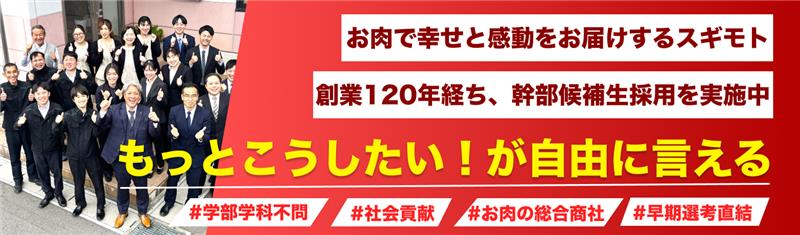 スギモトグループでは、従来の固定観念にとらわれず、自由な発想のできる人材を求めています。失敗を恐れず、チャレンジ精神をもって仕事に取り組める人なら、活躍のフィールドは無限に広がっています。我々も意欲溢れる人材に対し、力を伸ばせる環境をご用意いたします。